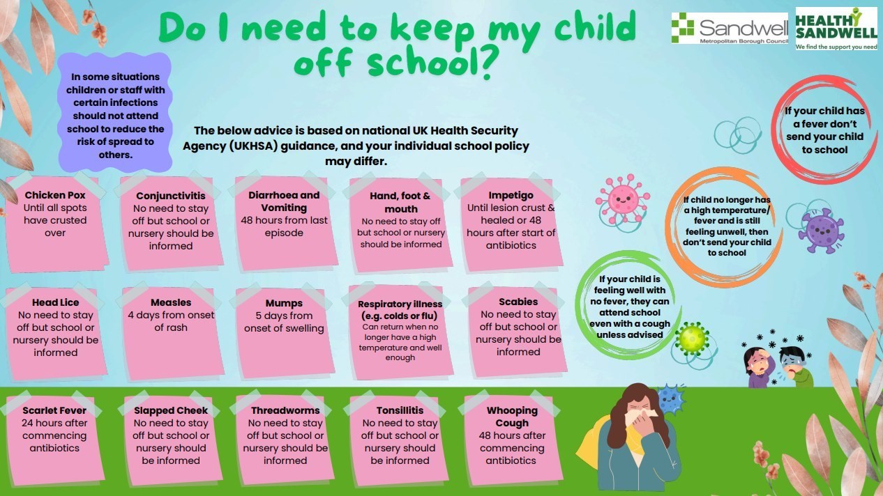 Please see the guidance issued by Sandwell in line with UKHSA regarding infections.