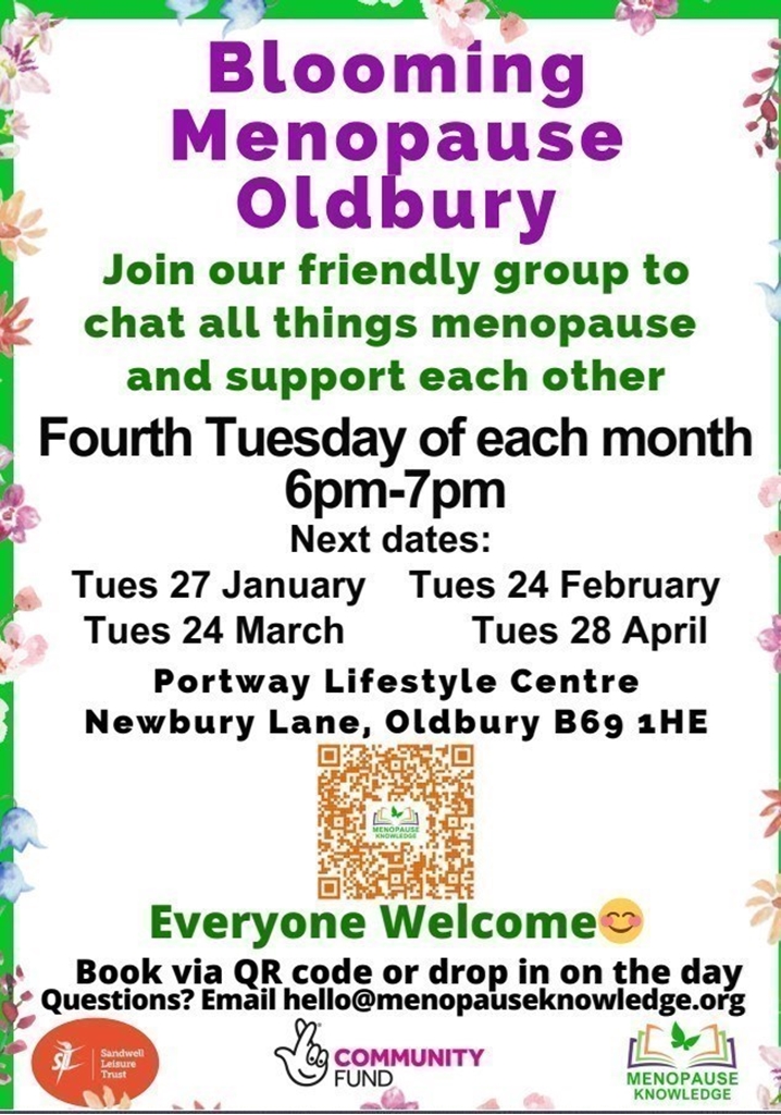 Blooming Menopause Group at Portway, Oldbury is set to continue with a few changes: